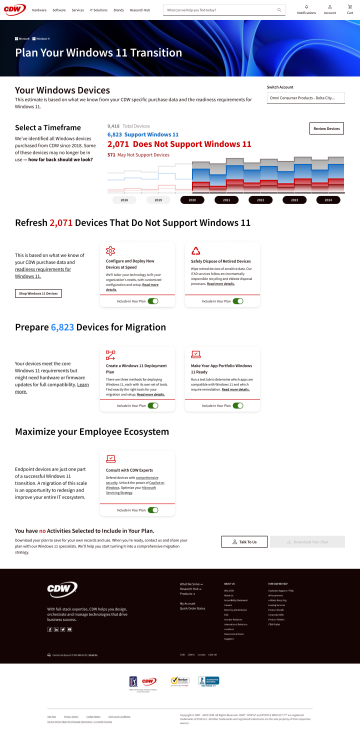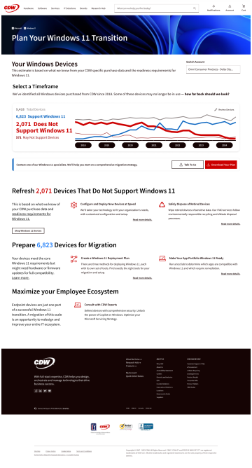 Initial version based on requirements from previous phase in project, plus redesign to conform to CDW Design System, new content, alignment to similar existing page structures, and consideration for branding tie-in to their partner, Microsoft.