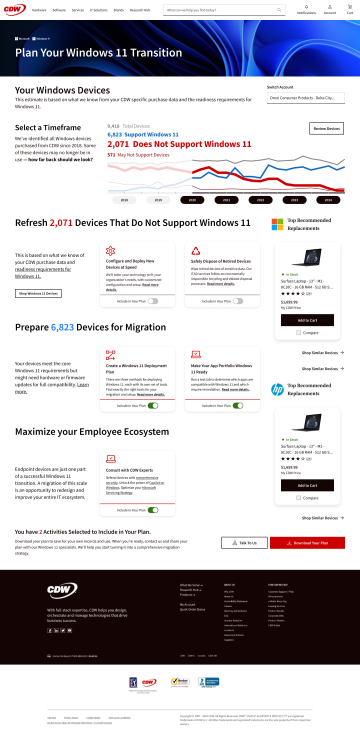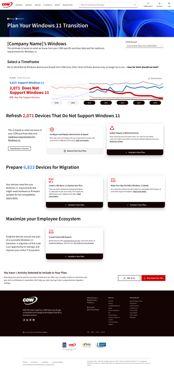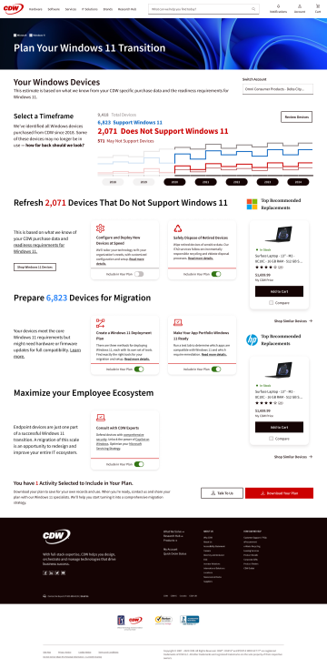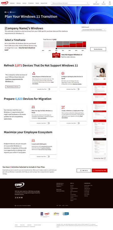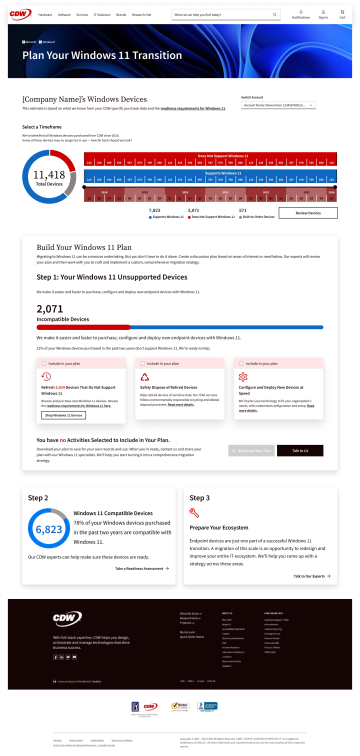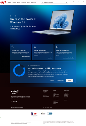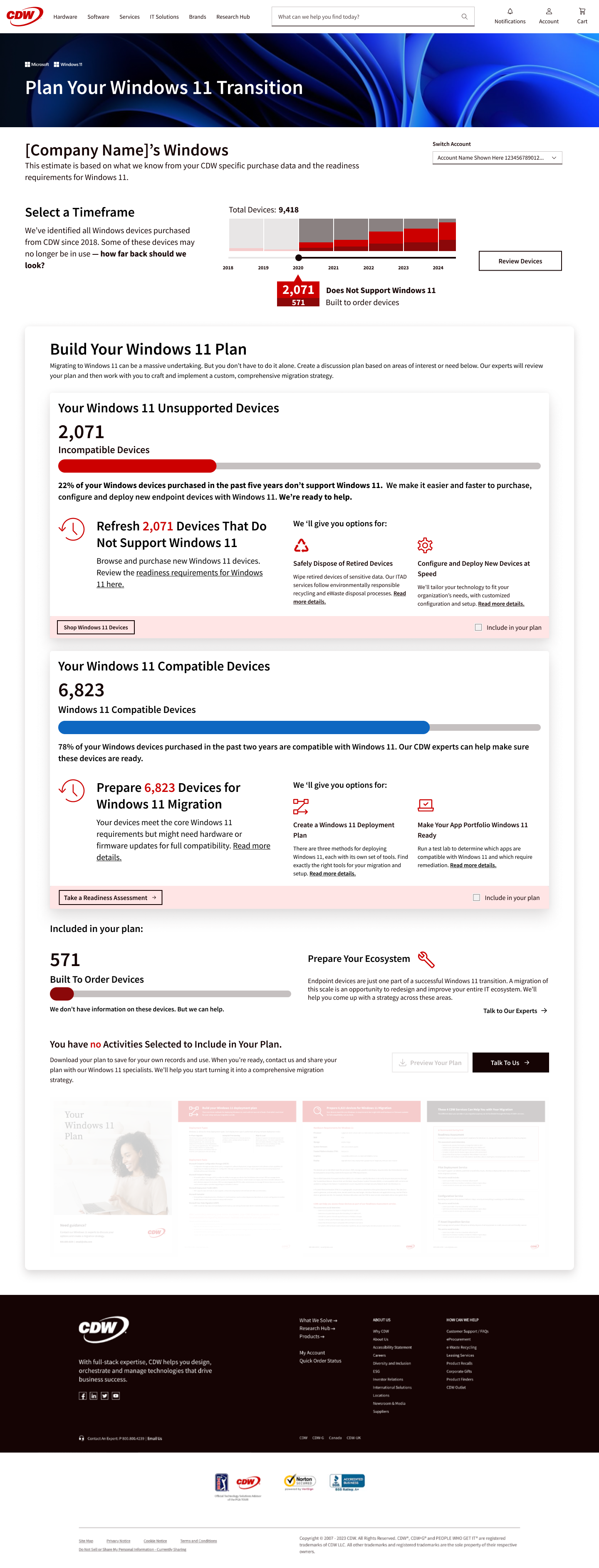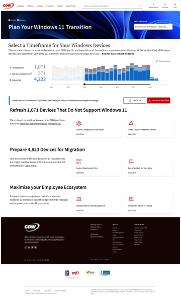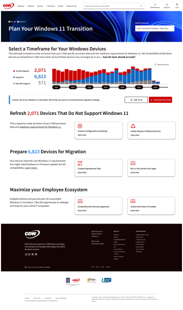 Initial version based on requirements from previous phase in project, plus redesign to conform to CDW Design System, new content, alignment to similar existing page structures, and consideration for branding tie-in to their partner, Microsoft.